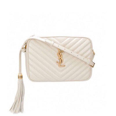 YSL Saint Laurent Lou 絎縫皮革相機包 流蘇掛飾 白色
