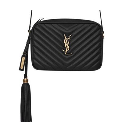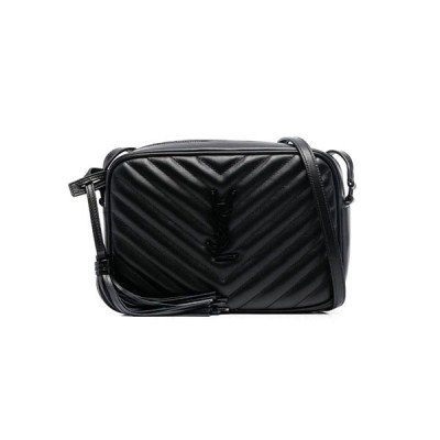 YSL Saint Laurent Lou 絎縫皮革相機包 黑標LOGO 流蘇掛飾斜背包 黑色