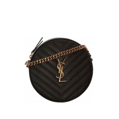 YSL Saint Laurent Vinyle Round 縫粒面皮革圓形包 單肩斜挎包 黑色